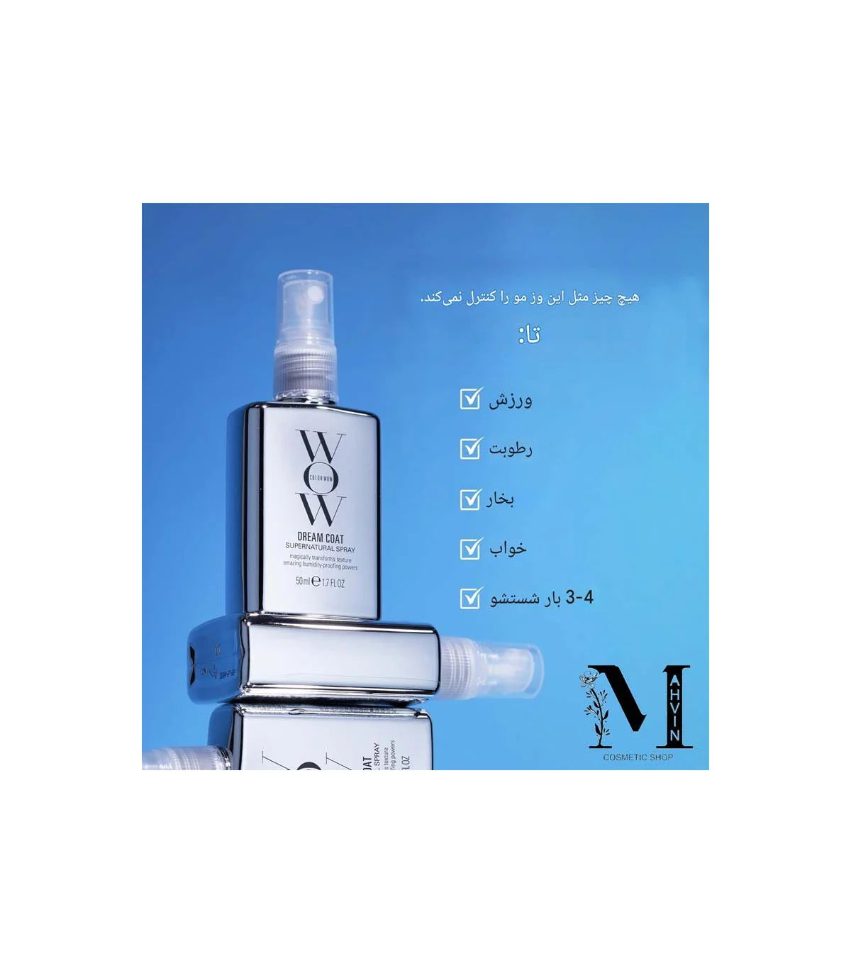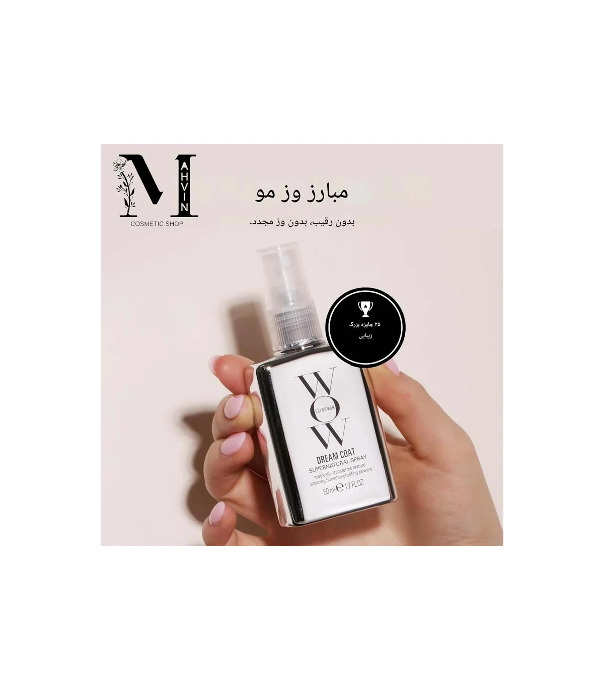 اسپری ضد وز مو Color Wow یکی از محبوبترین اسپریهای ضد وز در میان آرایشگران حرفهای و کاربران خانگی و یا حتی می توان گفت بهترین اسپری ضد وز مو است، زیرا بدون آسیب به مو، نتیجهای قابل مشاهده و ماندگار ارائه میدهد. اگر به دنبال موهایی صاف، براق و بدون وز هستید، اسپری ضد وز مو کالر واو Dream Coat انتخابی مطمئن و حرفهای برای روتین مراقبت از مو شماست. قیمت اسپری کالر واو و سایرمحصولات برند کالر واو را با کمترین مقدار و ضمانت اصالت کالا در مهوین شاپ ببینید و خرید کنید.