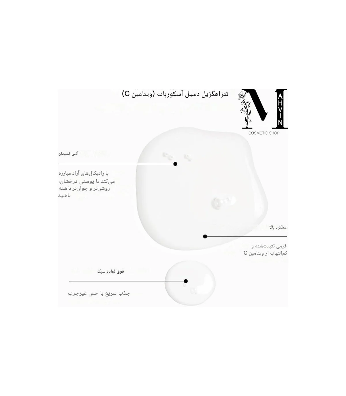 راز موفقیت سرم روشن کننده مدیک 8 در استفاده از تترا هگزیل دسیل آسکوربات است. برخلاف "ال-آسکوربیک اسید" معمولی که ناپایدار است، این فرمولاسیون ۴ برابر قدرت جذب بیشتری دارد و اکسید نمیشود (تغییر رنگ نمیدهد). ترکیب این ماده با ویتامین E باعث میشود اثرگذاری محصول چندین برابر شده و پوست شما همزمان تغذیه و محافظت شود.